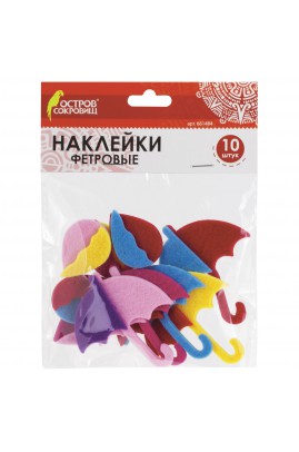 Изготовлены из фетра. В комплекте 10 красочных декоративных элементов в форме зонтиков. Предназначены для детей от 3 лет. Размер 5х6 см. Поставляются в пакете с европодвесом. Качественный клеевой слой обеспечит надежную фиксацию на любых поверхностях.